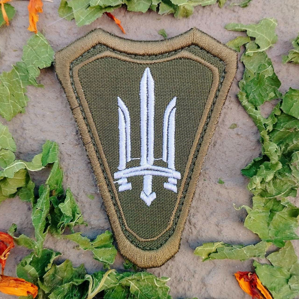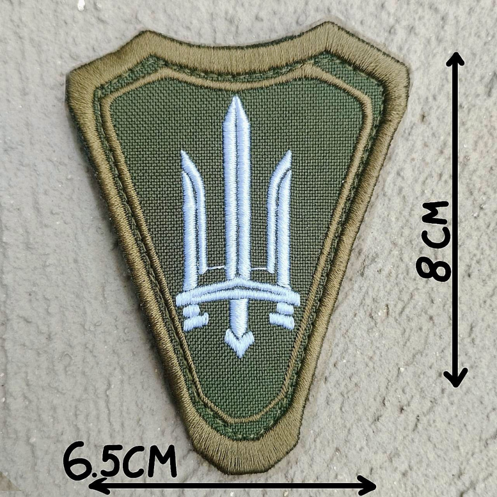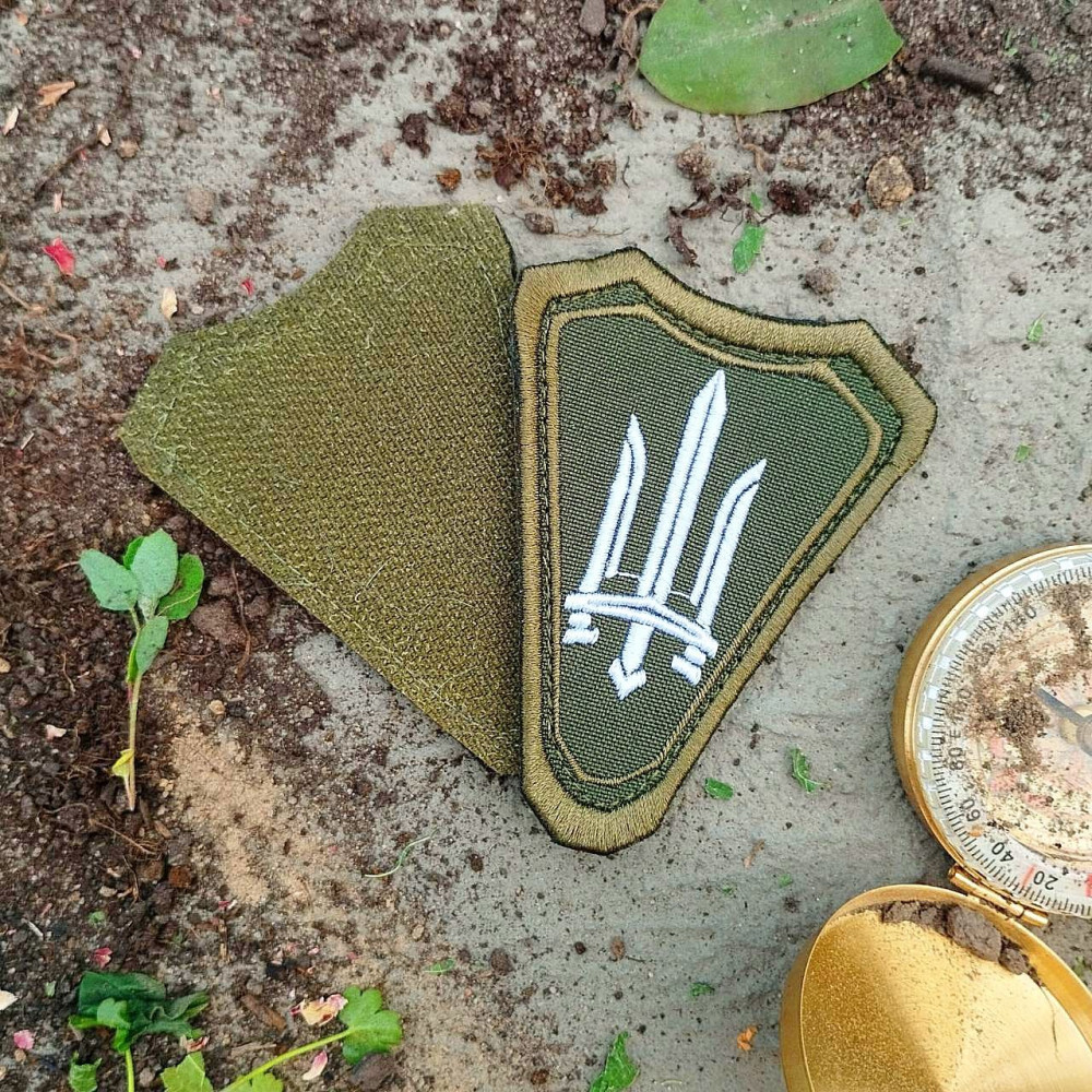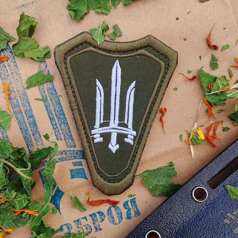 Тактичний шеврон у формі щита з вишитим логотипом Біла Зброя. Основа — оливковий камуфляжний колір, подвійна обвідка для додаткової міцності. Липучка на звороті для швидкого кріплення на форму, рюкзак чи екіпірування.